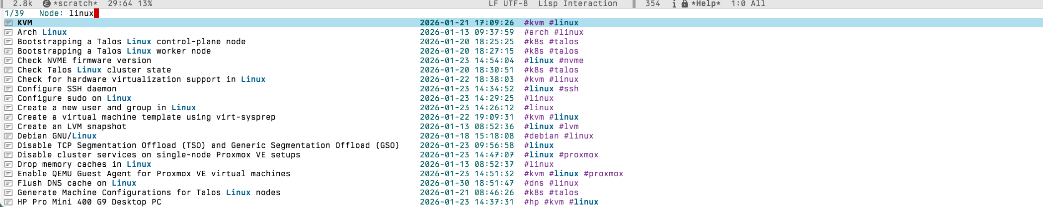 Recently I have also made the switch to Org Roam, that is great extension to Org Mode, which leverages the Zettlekasten method for organizing and linking your notes.